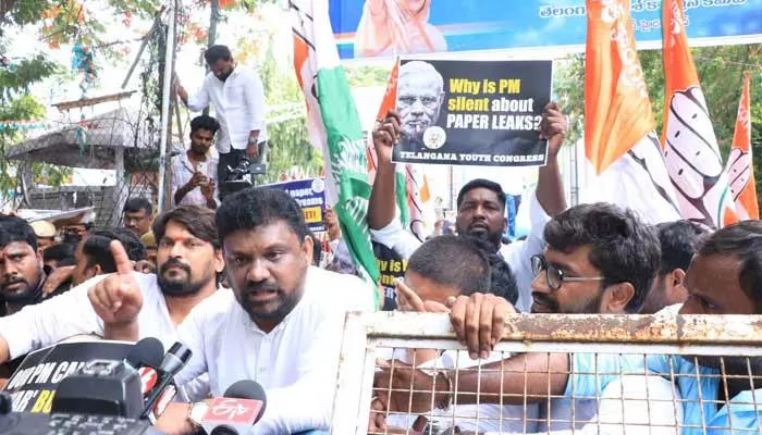 హైదరాబాద్ లోని గాంధీ భవన్ వద్ద ఉద్రిక్త వాతావరణం నెలకొంది. నీట్ పరీక్షను రద్దు చేయాలని డిమాండ్ చేస్తూ ఎన్ఎస్యూఐ నేతలు, కార్యకర్తలు ఆందోళనకు దిగారు. బీజేపీ కార్యాలయాన్ని ముట్టడించేందుకు గాంధీభవన్ నుంచి ర్యాలీగా బయలుదేరారు. నీట్ ను రద్దు చేయాలి అని నినాదాలు చేస్తూ.. ర్యాలీగా వెళుతున్న యూత్ కాంగ్రెస్ నేతలను పోలీసులు గాంధీభవన్ వద్దే అడ్డుకున్నారు. దీంతో పోలీసులు, నిరసన కారుల మధ్య తోపులాట జరిగి, ఉద్రిక్త వాతావరణ చోటు చేసుకుంది. బారీకేడ్లను తోసుకొని బీజేపీ కార్యాలయానికి ప్రయత్నించిన నిరసన కారులను పోలీసులు అరెస్ట్ చేశారు. నిరసన కారుల్లో ఓ నేత మాట్లాడుతూ.. తెలంగాణ బీజేపీ మంత్రులు నీట్ ను రద్దు చేశాకే తెలంగాణలో అడుగు పెట్టాలని, నీట్ రద్దు చేసి, ఎలాంటి ఆర్ధిక లావాదేవీలు లేకుండా విద్యార్ధులకు పారదర్శకంగా మళ్లీ పరీక్ష నిర్వహించాలని డిమాండ్ చేశారు. అంతేగాక నీట్ రద్దు చేసి విద్యార్దులకు న్యాయం జరిగేలా పోరాడకపోతే తెలంగాణ బీజేపీ ఎంపీలను రాష్ట్రంలో తిరగనివ్వమని హెచ్చరించారు. అలాగే ఈ నెల 27 వ తేదీన యూత్ కాంగ్రెస్ ఆద్వర్యంలో పార్లమెంట్ ముట్టడి కార్యక్రమం చేపట్టనున్నట్లు తెలిపారు.