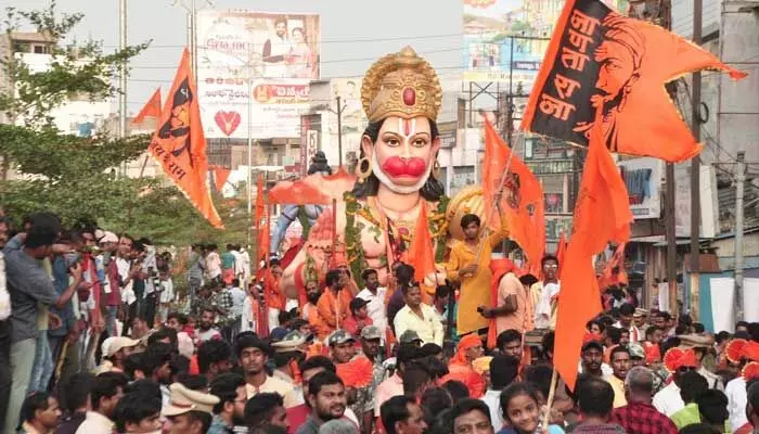 ప్రతి సంవత్సరం హనుమాన్ జయంతిని పురస్కరించుకుని భాగ్యనగరంలో ఘనంగా శోభాయాత్ర నిర్వహించనున్నారు. మంగళవారం ఏప్రిల్ 23 హనుమాన్ జయంతి సందర్భంగా గౌలిగూడ రామ మందిరంలో హోమం నిర్వహించిన అనంతరం ఈ భారీ శోభ యాత్ర ప్రారంభించారు. హైదరాబాద్లోని భజరంగ్ దళ్, విశ్వహిందూ పరిషన్ నేతృత్వంలో నిర్వహించే ఈ యాత్రకు హనుమాన్ భక్తులు పెద్ద సంఖ్యలో పాల్గొన్నారు. హైదరాబాద్, సికింద్రాబాద్ నగరాల్లో అత్యంత దూరం కొనసాగే ఈ భారీ శోభాయాత్ర గౌలిగూడ నుంచి ప్రారంభమై.. నారాయణగూడ, ఆర్టీసీ క్రాస్, నుంచి తాడ్ బన్ హనుమాన్ ఆలయం వరకు కొనసాగుతుంది. ఈ యాత్రకు ఈ సంవత్సరం భారీ సంఖ్యలో జనం వస్తారనే సమాచారంతో పోలీసులు పటిష్ట బందోబస్తును ఏర్పాటు చేశారు. ఇందులో భాగంగా శోభాయాత్ర కొనసాగే మార్గాల్లో ట్రాఫిక్ ఆంక్షలు పెట్టి.. వాహనాలకు దారి మళ్లిస్తున్నారు. ఈ యాత్ర కోసం ప్రధాన కూడళ్లలో స్వచ్ఛంద సంస్థలు, హిందూ సంఘాలు భారీ ఎత్తున ఏర్పాట్లు చేశారు.